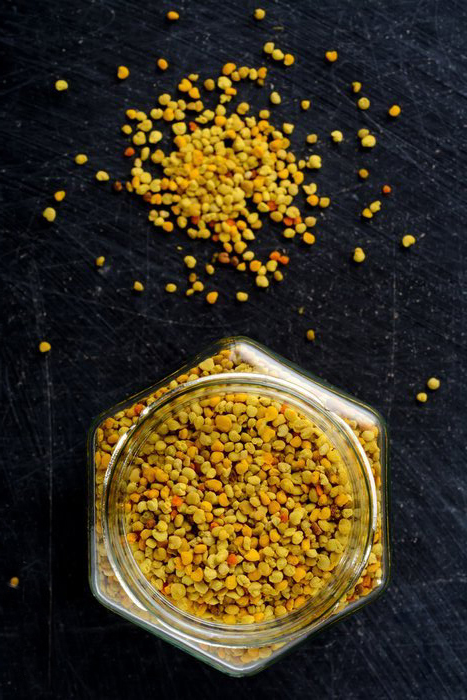 Récolté et enrichi de nectar par les abeilles pour former de petites pelotes transportables qu'elles fixent sur leurs pattes arrières, il est transporté jusqu'à la ruche.